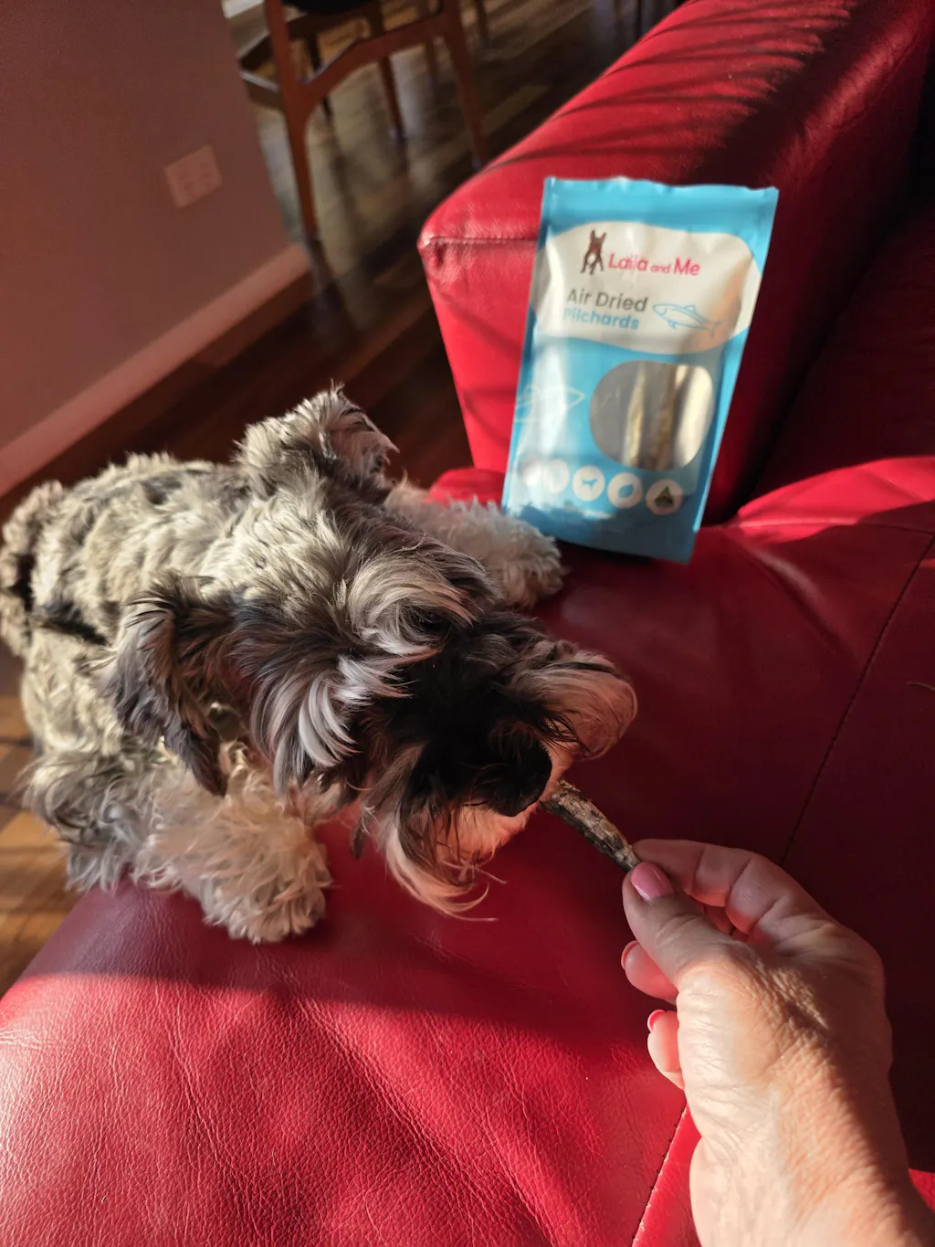 Yes. Pilchards are soft-boned fish. Once air-dried, those bones crumble completely ā no splintering, no sharp edges, no choking risk. Your dog (and your cat) chews through the whole thing and digests it without issue.