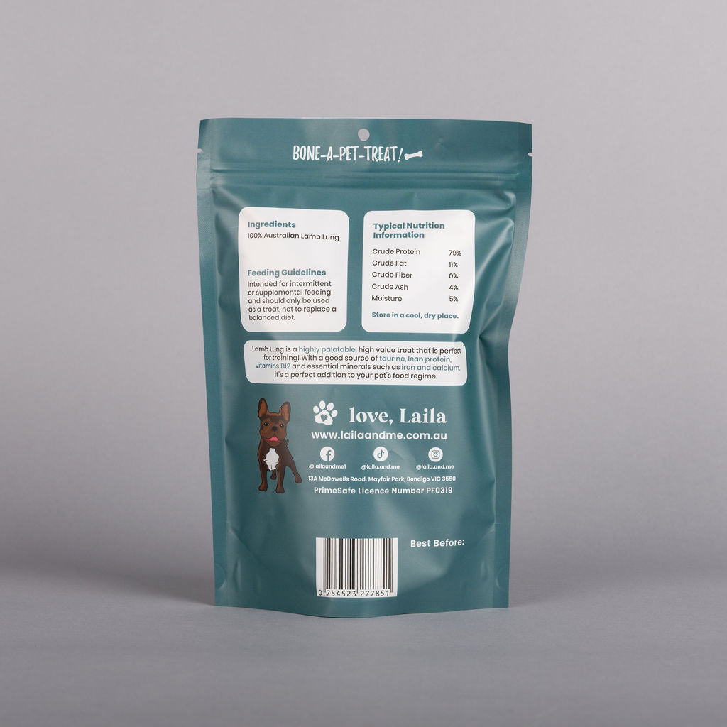 Make training time irresistible with our Lamb Puff Chips — a light, air-dried treat made from 100% Australian lamb lung. Naturally rich in protein and low in fat, these crunchy chips are the perfect bite-sized reward for dogs of all breeds, ages, and dietary needs.