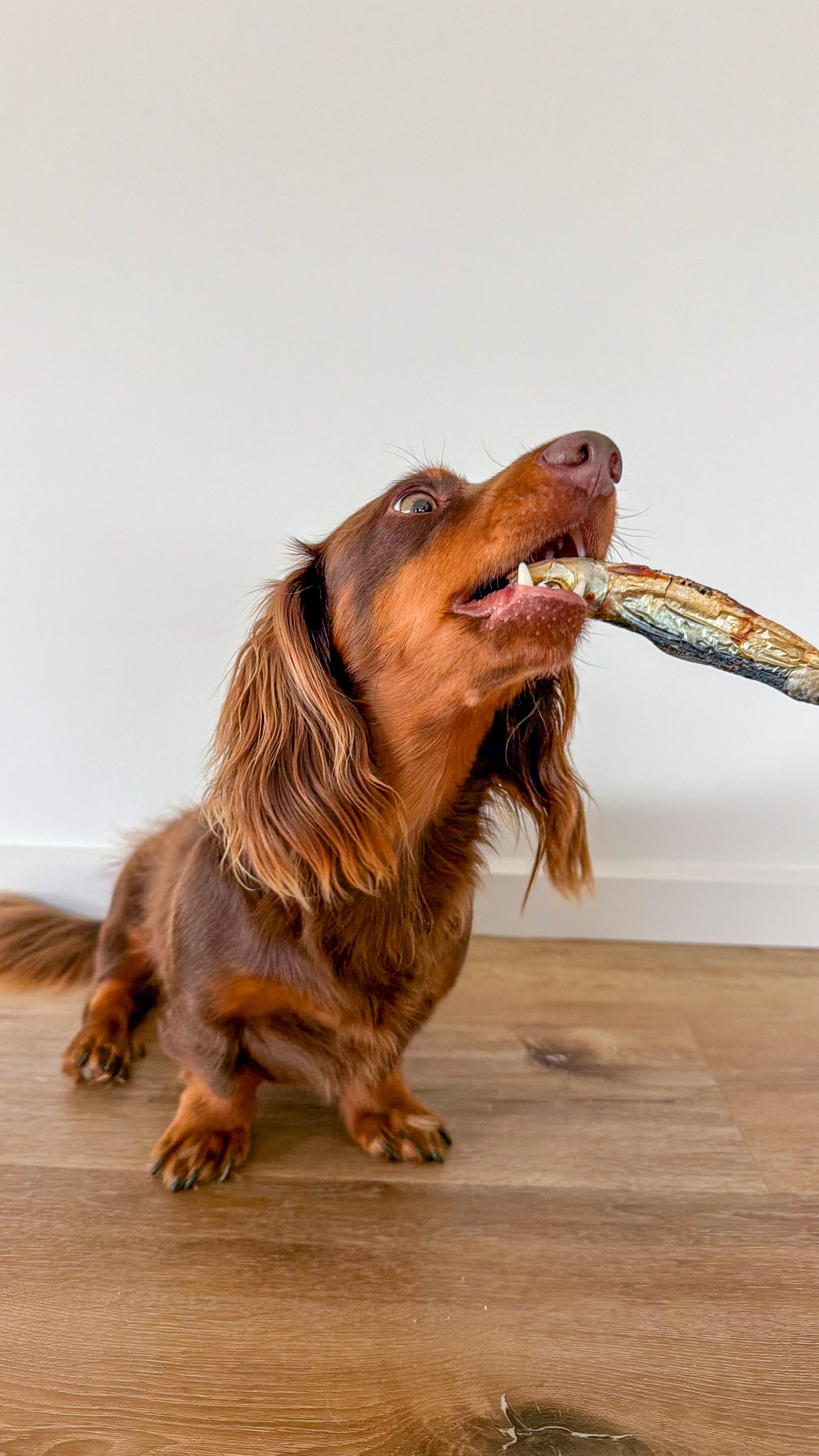 Whole pilchards are an excellent source of high-quality protein and essential Omega 3 fatty acids. Omega 3 is vital for the health of the immune system, skin and fur, and brain. Unfortunately, in the modern diet, we tend to eat far too much Omega 6 and not enough Omega 3, which can upset the balance of healthy fats and lead to inflammatory conditions. Adding wholefood sources of Omega 3, like pilchards, is an excellent way to combat this common dietary shortcoming.