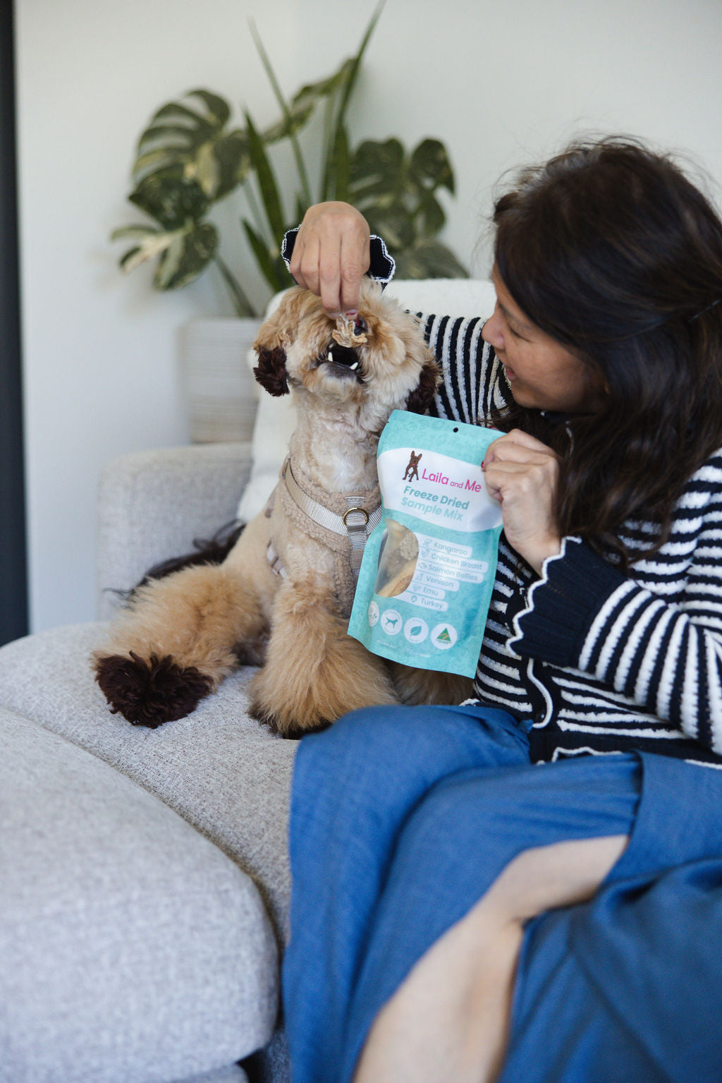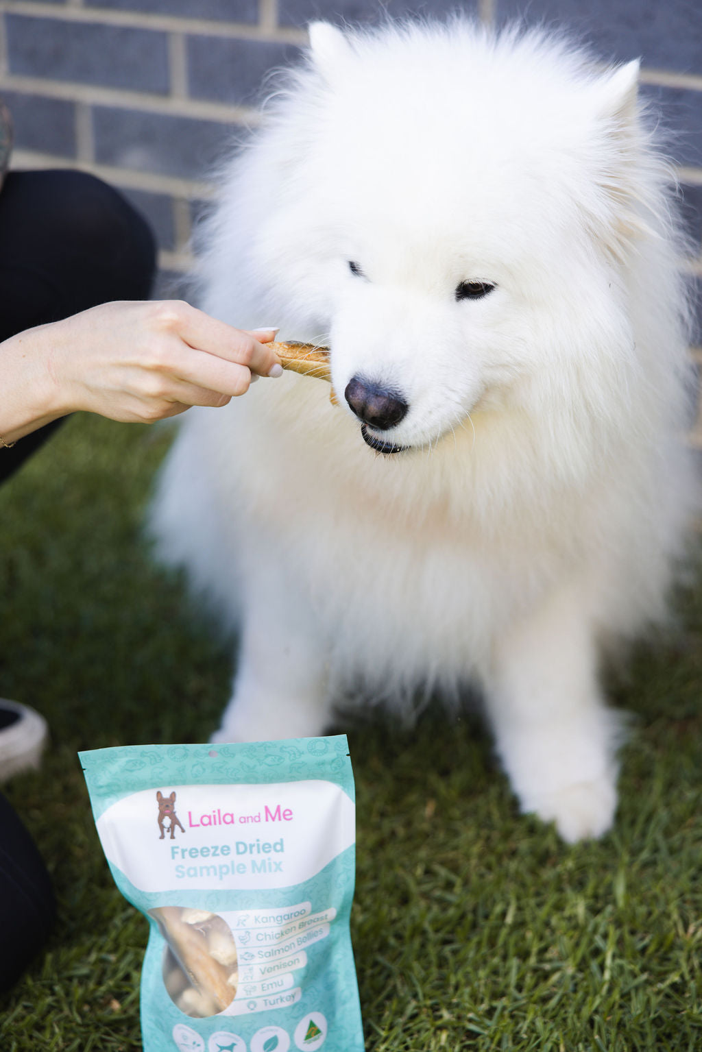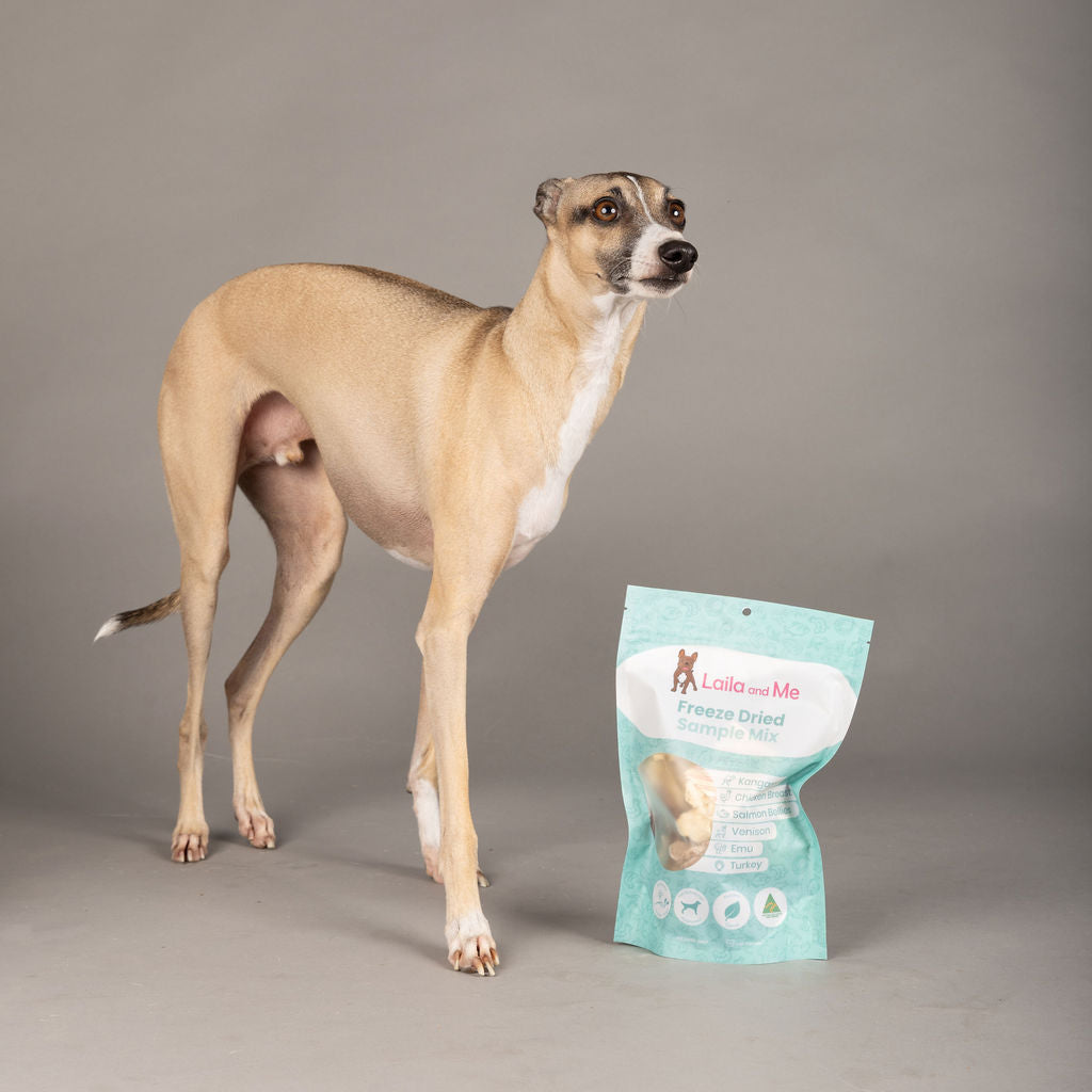 The Freeze Dried Sample Mix is for dogs who want to try everything and for humans who know treat-time negotiations all too well. Packed with six iconic proteins; Kangaroo, Chicken Breast, Salmon Bellies, Venison, Emu and Turkey. Each piece is freeze dried to stay lightweight, nutrient-rich and irresistibly tasty.