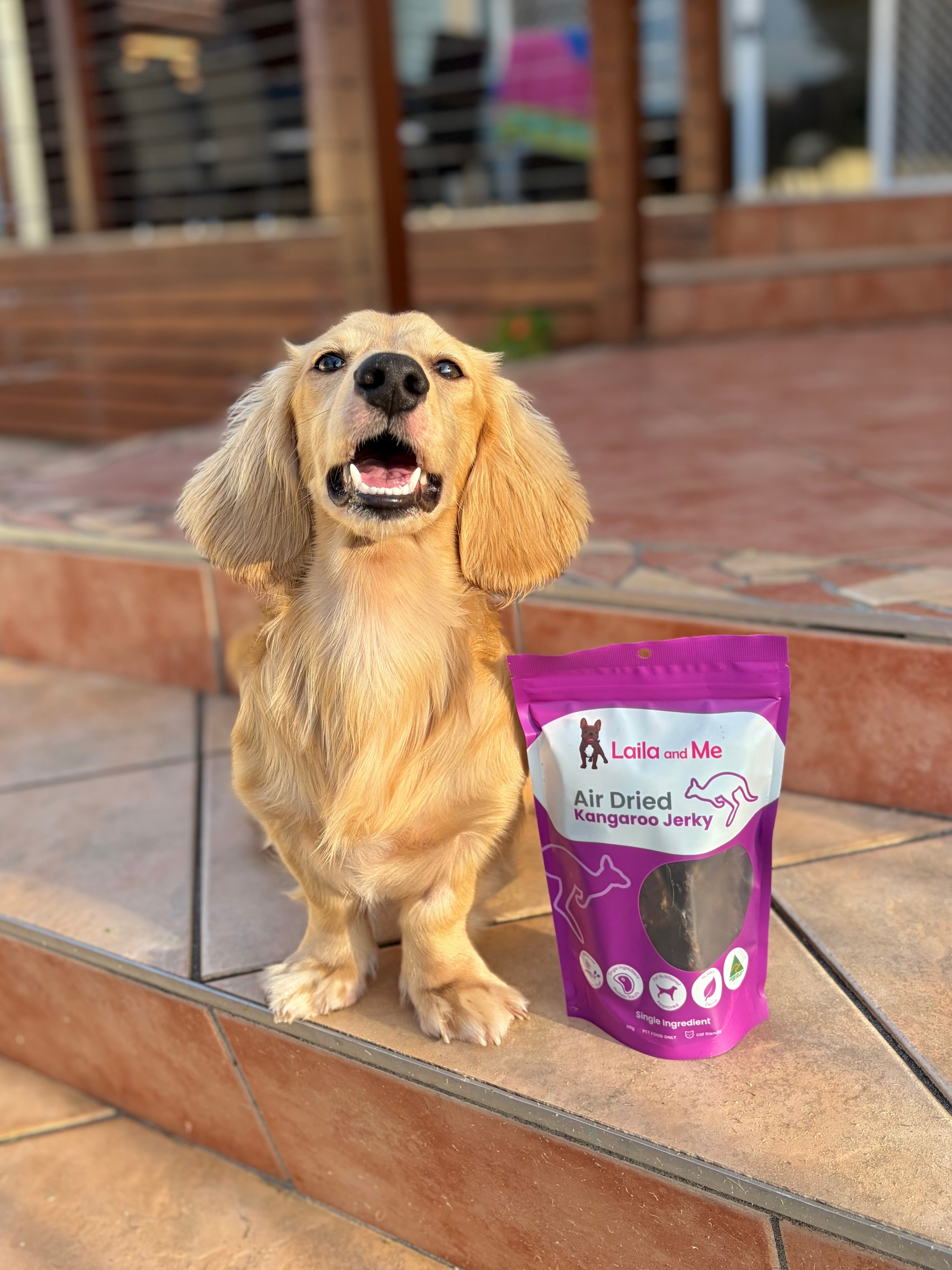 Dogs who require a low-fat diet (especially if they suffer from pancreatitis) don’t usually get to enjoy treats, as a lot of treats on the market are full of fat, salt, sugar, and additives. Giving your dog Laila and Me Dehydrated Kangaroo Jerky for Dogs is a safe alternative and one they can enjoy safely.