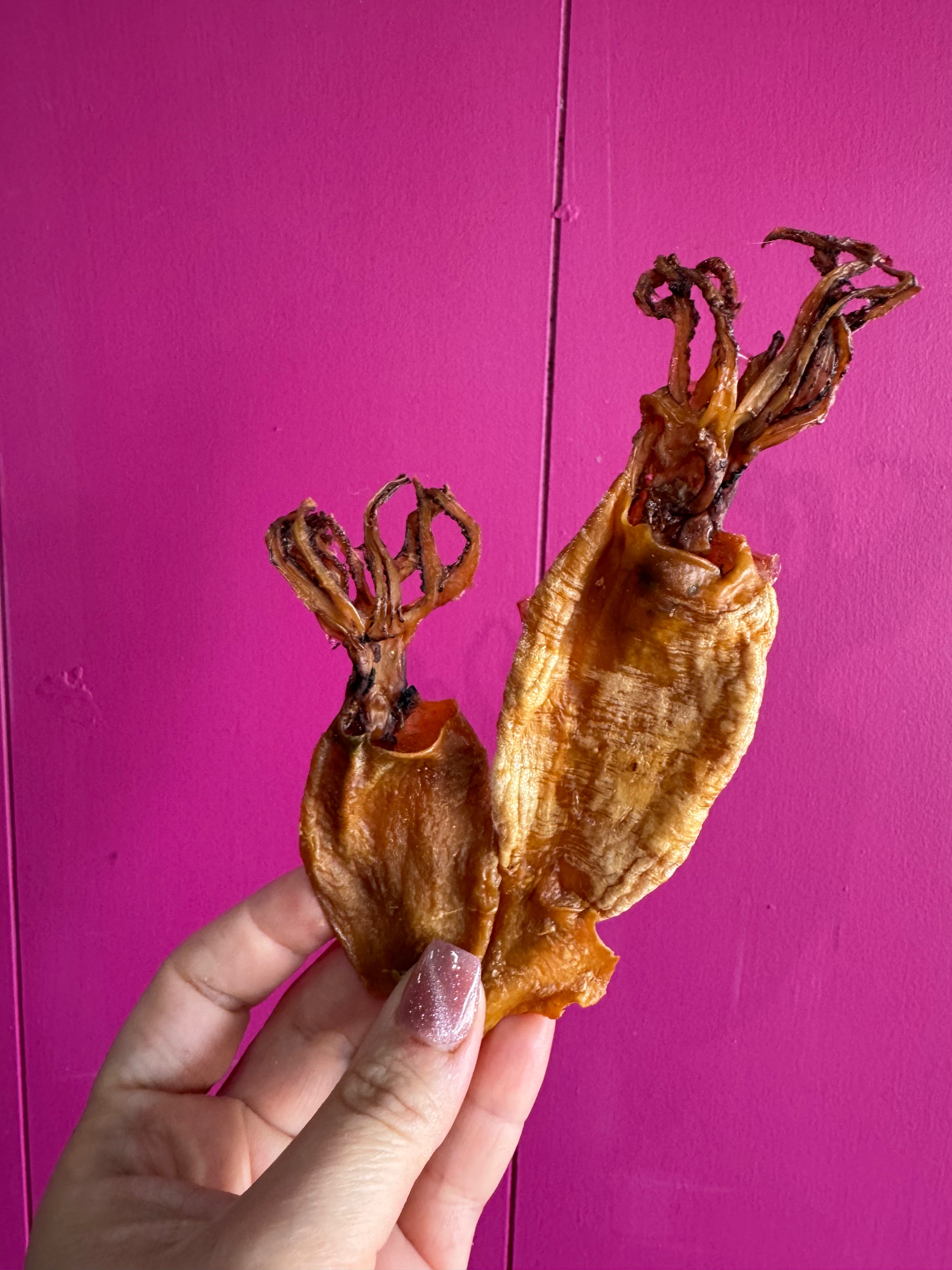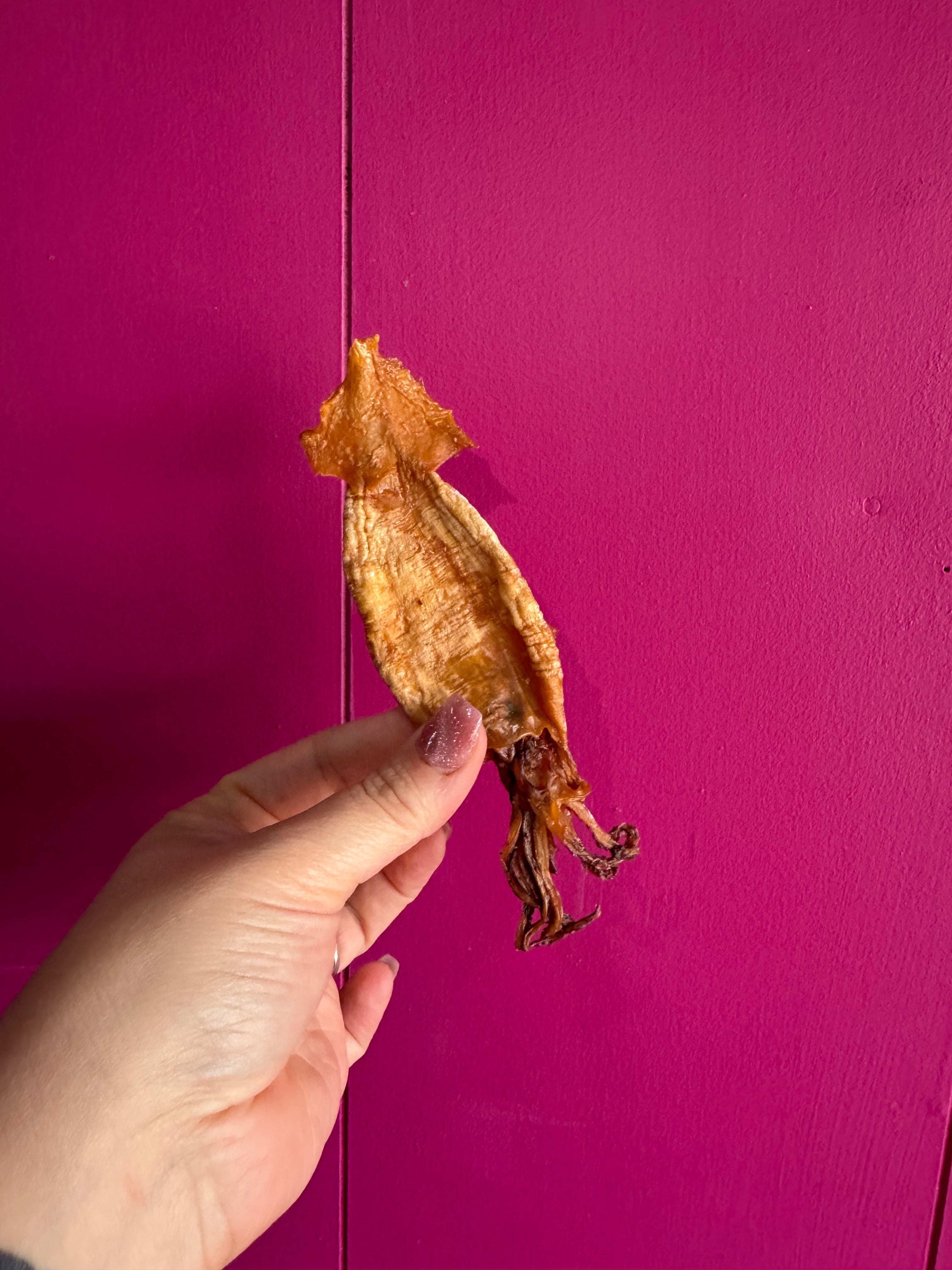 Our Arrow Squid shrank way more than expected during drying (nature stays unpredictable), so instead we’re offering them as 70g bags. Same ingredient. Same process. Just smaller, lighter, and a bit more delicate than planned.