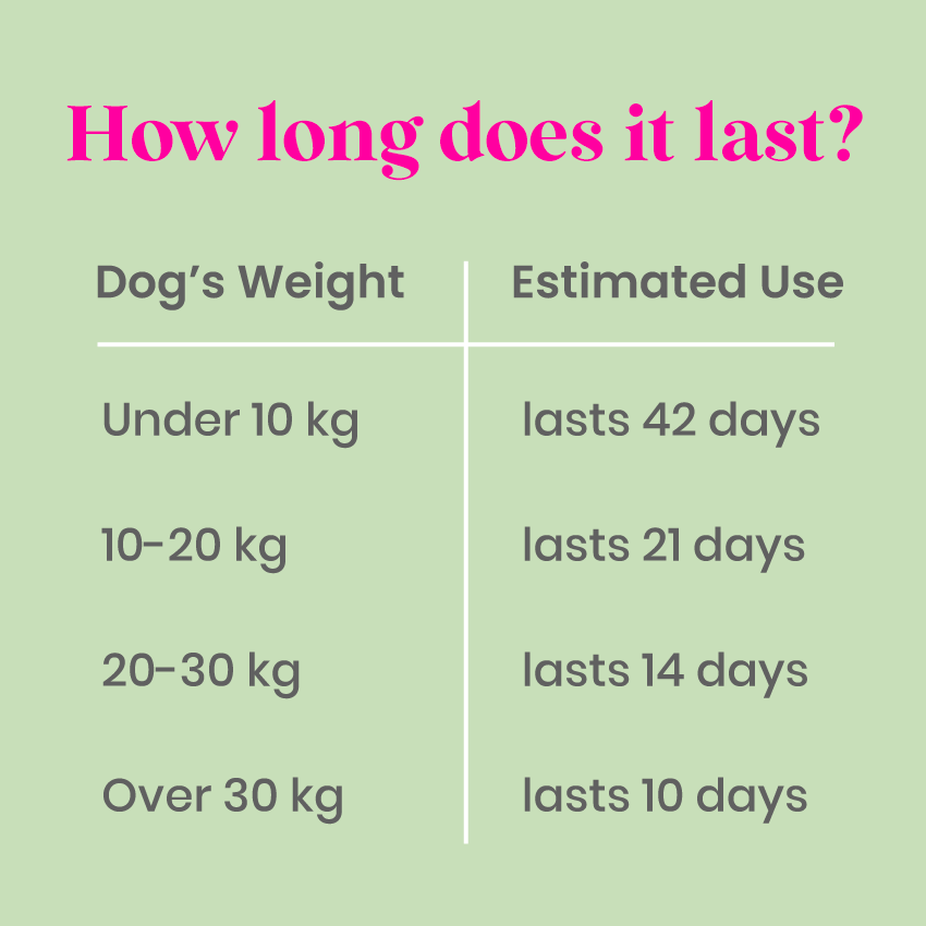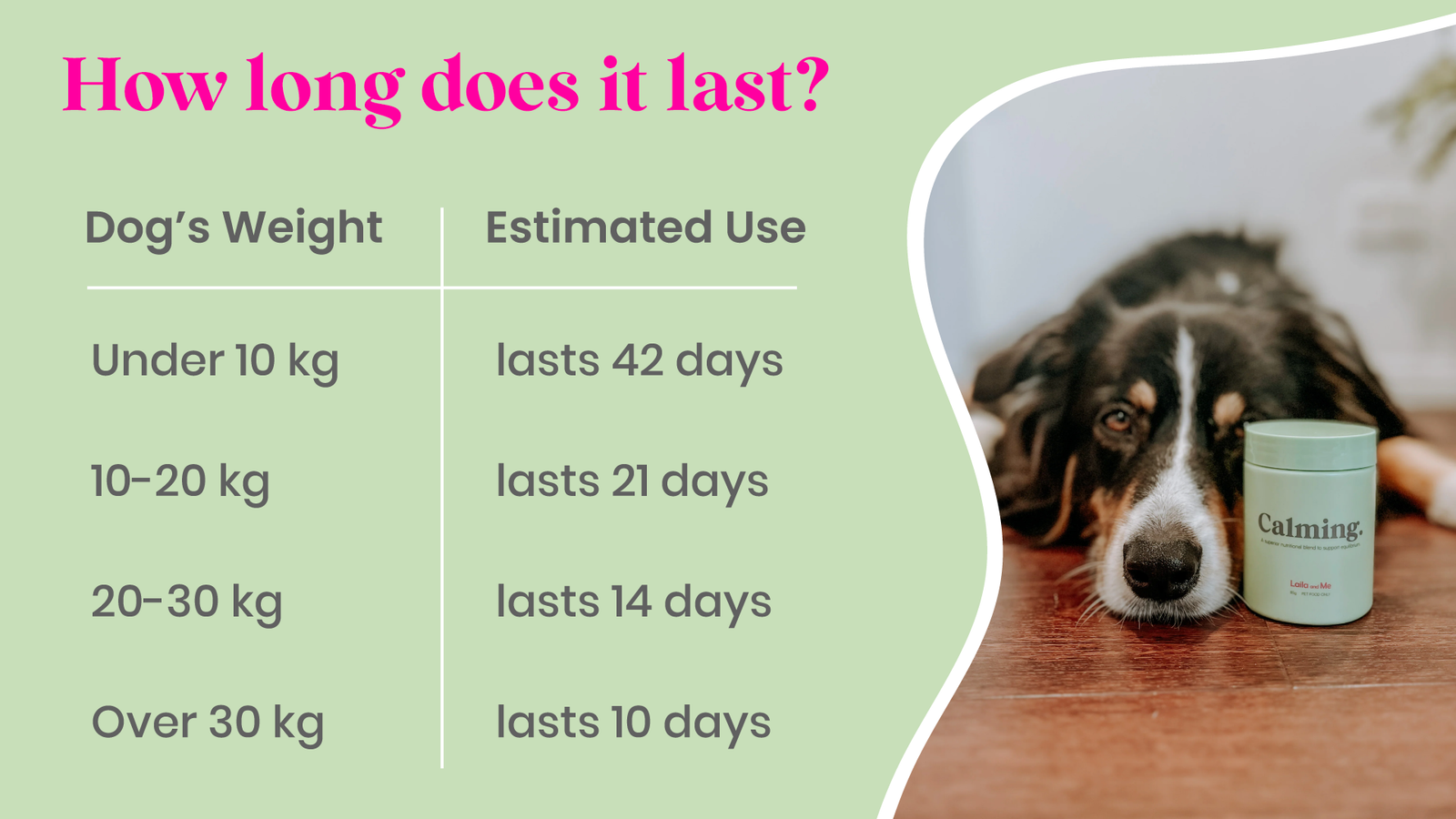 Some dogs may show signs of improvement within a few days, especially with consistent daily use. For best results, allow 4–6weeks for the full benefits to build. Always use with behavioural training
