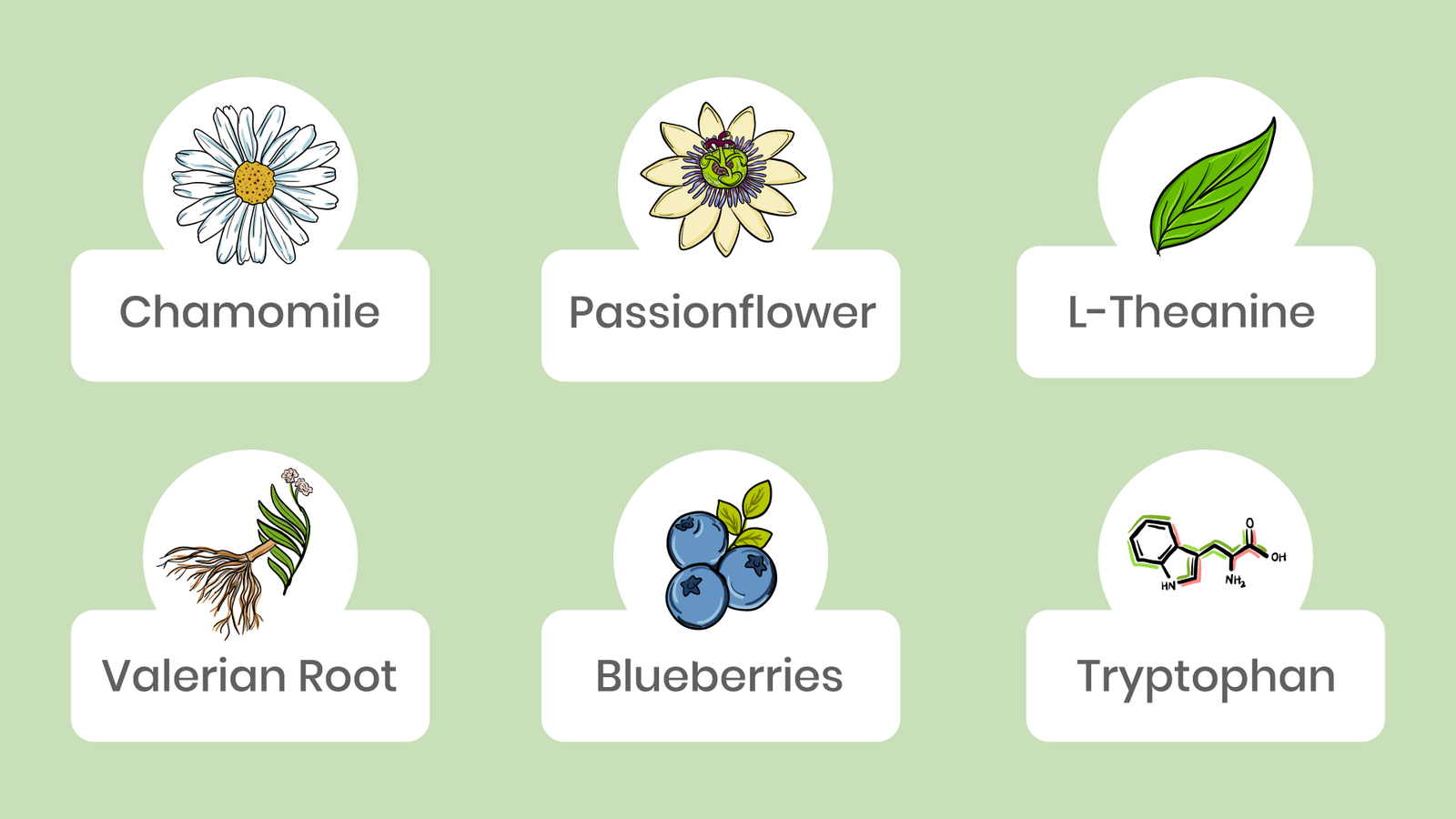 Chamomile and Passion Flower support digestion by calming the gut-brain axis, helpful for loose stools, gas, or appetite changes.